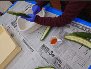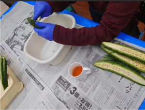 ゴーヤーの下処理中です。